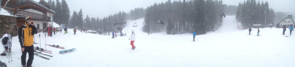Na vrchol kopce nás vyvezla čtyř sedačková lanovka, na které se při první jízdě některým jedincům se strachem z výšek mohou lehce zatřást kolena. Malá závrať výměnou za perfektní sjezd z kopce dolů se dá přežít.Čtvrt hodinka strachu není koneckonců občas na škodu. Na obloze bylo vymeteno a slunce se odráželo od vrcholků hor. Na svahu byl čerstvý sníh, jen místy namrzlý,a tak se snowboardovalo jedna báseň. Zkušení lyžaři a snowboarďáci neodolají černé sjezdovce Slalomka dlouhé přibližně 1000 metrů, ti opatrnější ocení červenou Sjezdovku dlouhou 1200 metrů a začátečníci a pohodáři modrou Loučku dlouhou 1500 metrů. Na svahu Můstek je podle sněhových podmínek otevřen snowpark a noční lyžování.